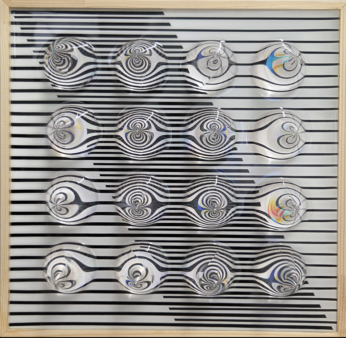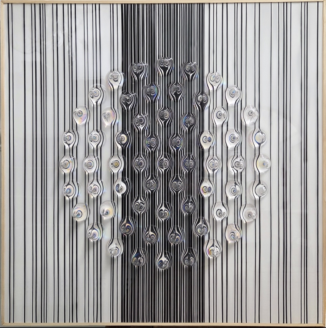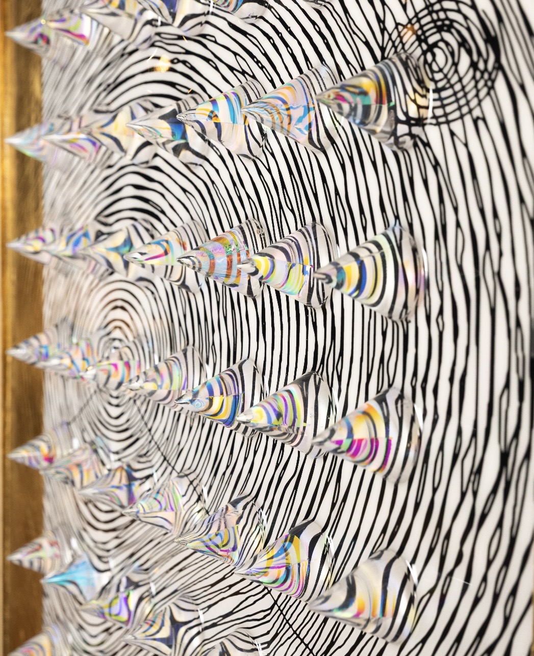 Appropriating the apparatus of the two-slit experiments (half-silvered mirror, dichroic materials and prisms) as creative media, she opens up a visual language of possibilities, bringing the elusive quantum properties of light to physical form. Artistic investigation of these materials generates unique and playful kinetic artworks. Colours and forms are not fixed—they shift, morph, appear and disappear as the viewer alters viewing angle, revealing the radiant colourful beauty hidden within white light.